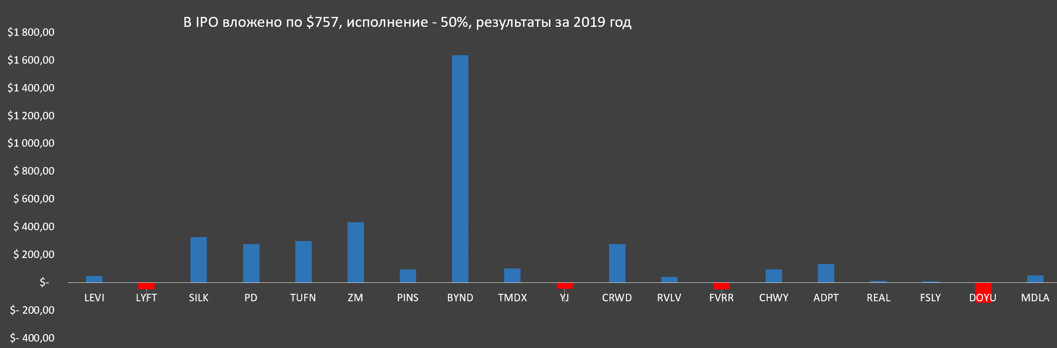 Ниже – примеры заработка на IPO в конце 10-х годов. Так, в 2019 г. из 19 IPO убыточными стали только 4, инвестиции в Beyond Meat могли принести около $1400, это практически удвоение стартового капитала.
