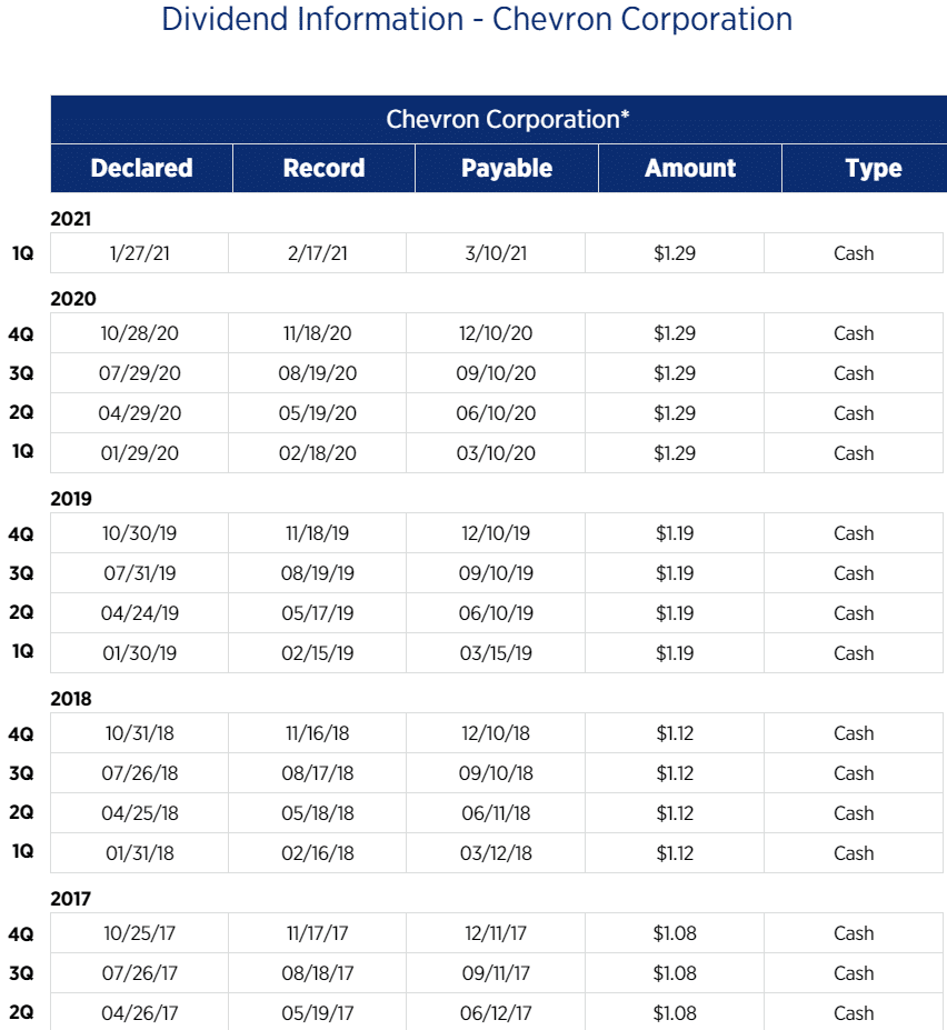 Дивидендная политика Chevron