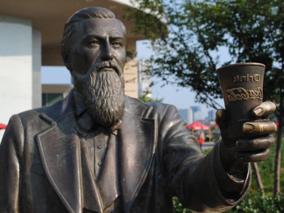 Памятник Джону Памбертону - Неизвестно, что было бы с Кока-Колой, если бы за дело не взялся Аза Кендлер – этот человек за несколько лет скупил наследие Памбертона, в том числе и точный рецепт сиропа. Вместе с Фрэнком Робинсоном они продолжили работу над производством и расширением продаж Кока-Колы. Уже в 1893 г. регистрируется товарный знак Кока-Кола.