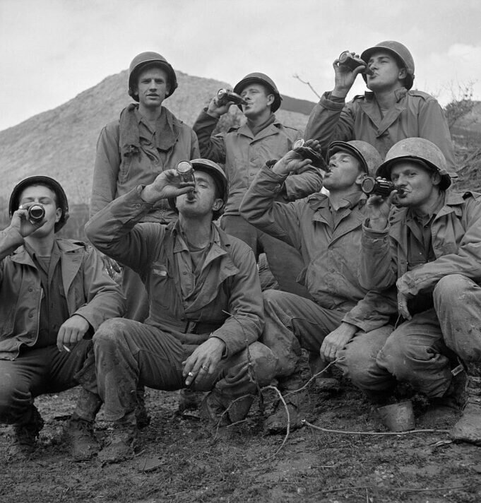 Солдаты пьют Кока Колу - В послевоенный период Coca—Cola продолжает участвовать в качестве спонсора в проведении большинства крупных спортивных состязаний. К их числу относятся Олимпиады, чемпионаты мира по футболу, это часть стратегии продвижения и укрепления бренда. Еще в 20-е годы Вудрафф заложил основы этой политики, от нее не отходили и в будущем.