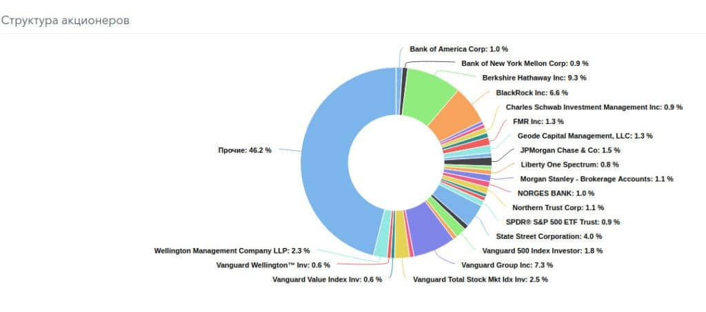 Характеристика акций Coca—Cola, информация об основных акционерах