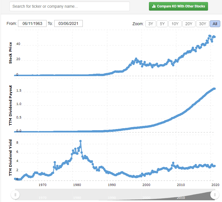 Стоимость акций Coca-Cola, онлайн-график