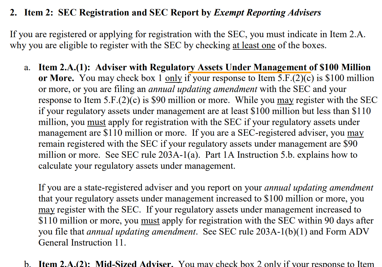 - Для советников, чей AUM приближается к $100 млн, есть своего рода регистрационный буфер в диапазоне от $90 до $100 млн.