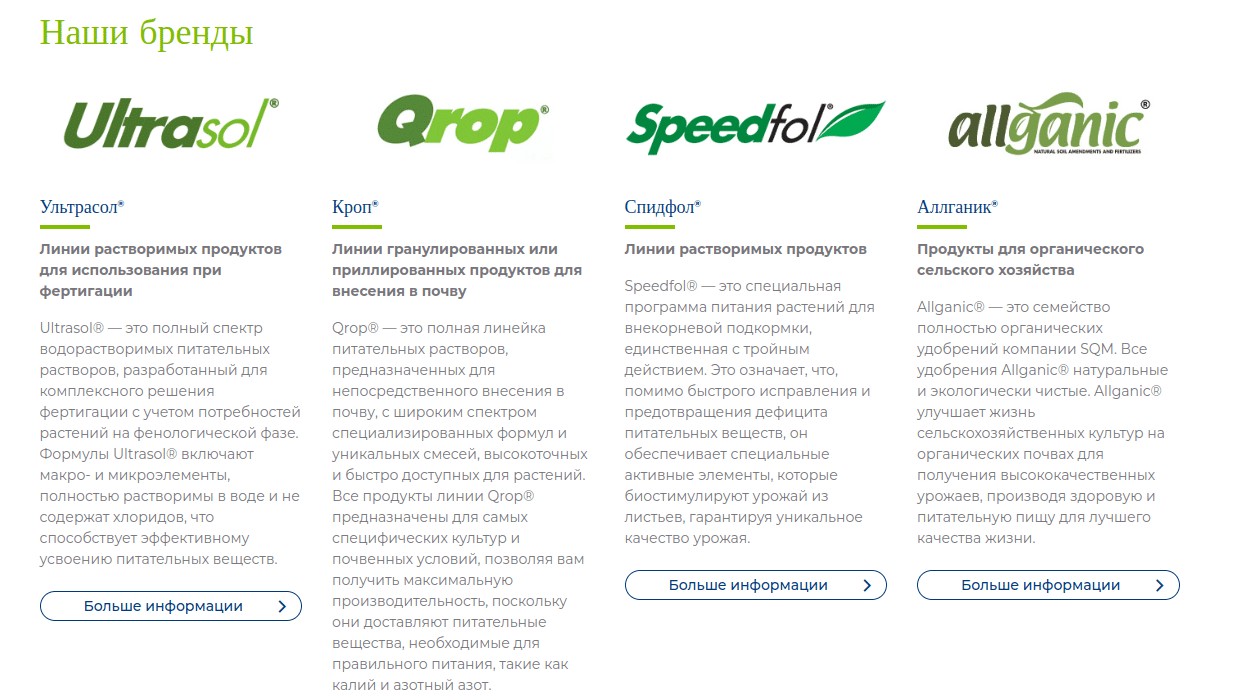 - Специализированные удобрения для растений: SQM производит специальные удобрения, которые помогают фермерам повышать урожайность и качество различных культур. Эти удобрения включают калийные и йодные составы. SQM фокусируется на предоставлении специальных продуктов, которые имеют преимущества перед обычными удобрениями.
