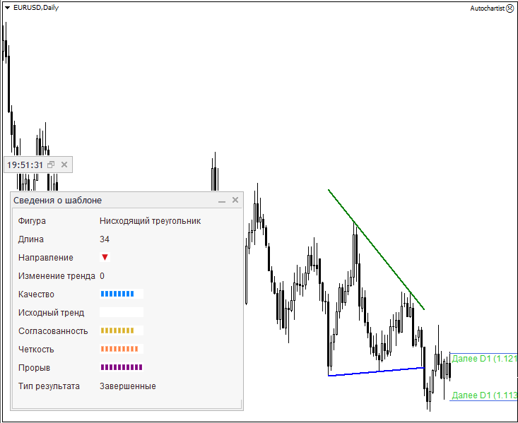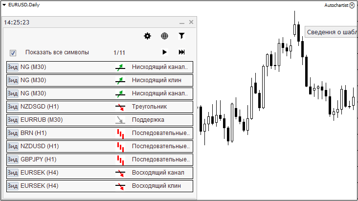 Поэтому все действия авточартист совершает механически, по заданному алгоритму. И найденные им фигуры могут подходить под эти параметры, но при этом быть совершенно не рабочими. В связи с этим необходимо просматривать все интересующие паттерны и оценивать их с визуальной точки зрения.
