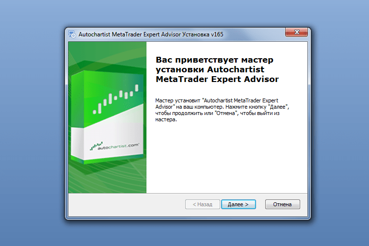 Откроется страница сайта, на которой нужно нажать кнопку Download и скачать Autochartist. После этого запустить скачанный файл. Появится вот такое окошко: