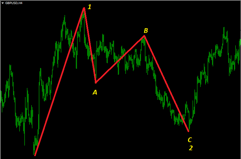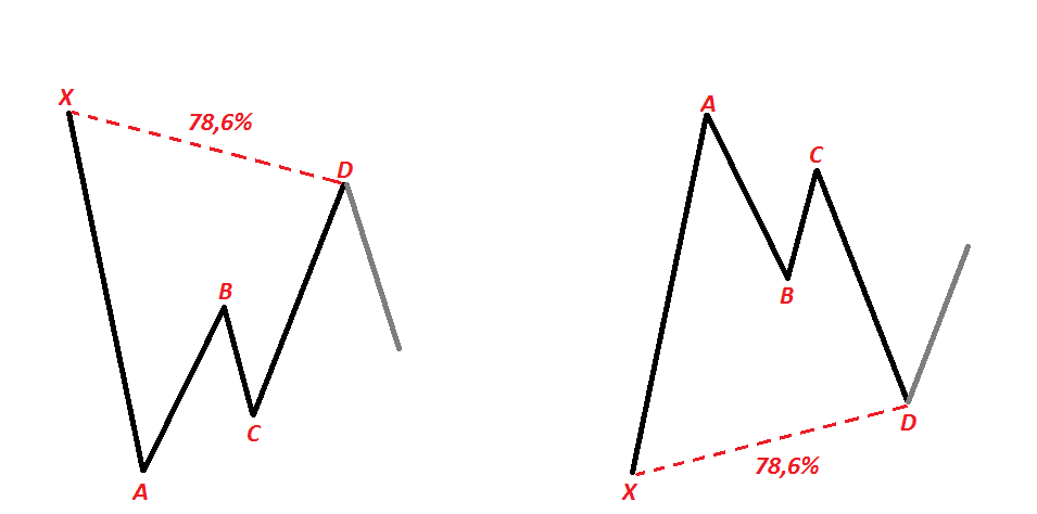 Теперь рассмотрим как же она формируется. Итак, всего есть четыре движения, которые и образуют нужную нам форму. Их принято обозначать через буквы, то есть паттерн начинается с буквы X, и далее следуют A, B, C, D. То есть отрезки (волны) будут называться XA, AB, BC, CD. Для них характерны следующие соотношения: