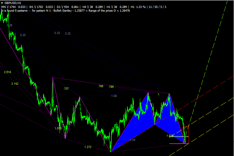 И вот здесь становится очевидным несомненное преимущество грамонической модели Гартли, да и всех остальных гармоников, в общем-то, тоже. Структура строится на соотношениях, а значит у нас есть конкретные числа. Конечно, бабочки не строятся пункт в пункт и в районе, где должен произойти разворот цена может и выскакивать на некоторое расстояние дальше уровня 78,6%. Но погрешность совсем мала по сравнению с тем, что предполагается в большинстве прочих торговых моделей.