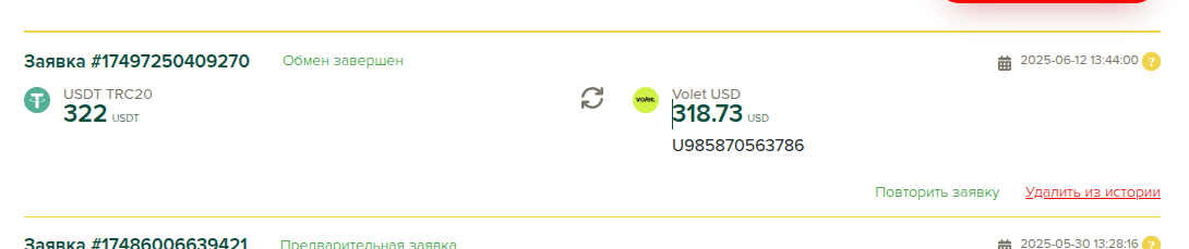Менял сегодня 322 USDT TRC20 на Volet, получилось 318.73 USD на выходе. Вполне нормально и быстро, обмен прошел за 7 минут где то. Это мой третий обмен здесь. Всегда все быстро и без всяких верификаций и задержек