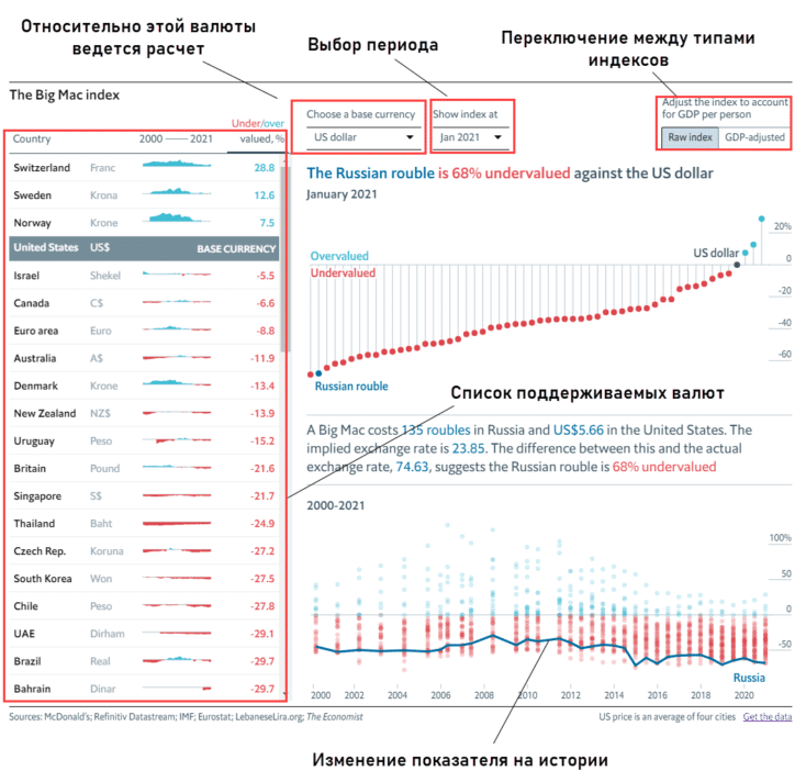 The Economist рассчитывает 2 версии индекса:
