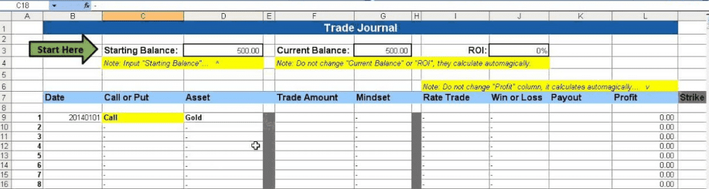 Форма такого дневника произвольная, это может быть специальная программа или простая Excel таблица. В ней указывайте время совершения сделки, направление, ее характеристики и самое главное – причину входа в рынок. Если работаете с турбо опционами, ведение такой статистики вручную может быть сложным. Пример дневника показан на рисунке ниже.
