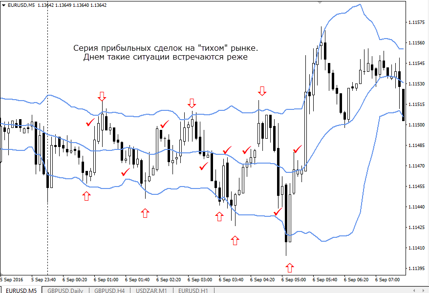 - Если ТС предназначена под спокойный рынок, есть смысл искать точки входа и после закрытия бирж США. В ночное время такие сделки отрабатывают особенно хорошо. Правда, в это время брокеры часто срезают проценты выплат по сделкам, компенсируя растущий винрейт трейдеров;