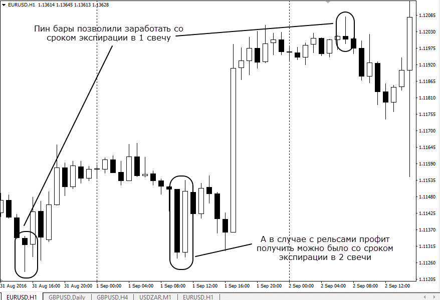 - Свечные паттерны – на форекс они используются как фильтры в ТС, в случае с бинарными опционами значимость свечных конструкций возрастает. Часто после формирования паттерна, даже если он не отрабатывает на 100%, то на 1-2 свечах есть движение в нужном направлении. В бинарном трейдинге это свойство используется при торговле с малыми сроками экспирации;