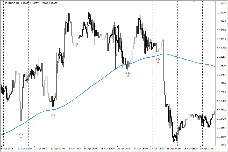 Во всех описанных ниже стратегиях для бинарных опционов применяются стандартные методы использования скользящих средних. Для фильтрации сигналов обращается внимание и на характер движения графика, от конфигурации свечей зависит формирование точки входа.