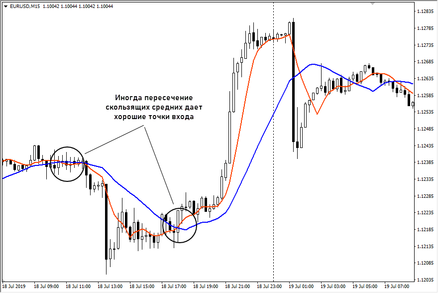 Эти приемы со скользящими средними используются повсеместно, в том числе и на бинарных опционах: