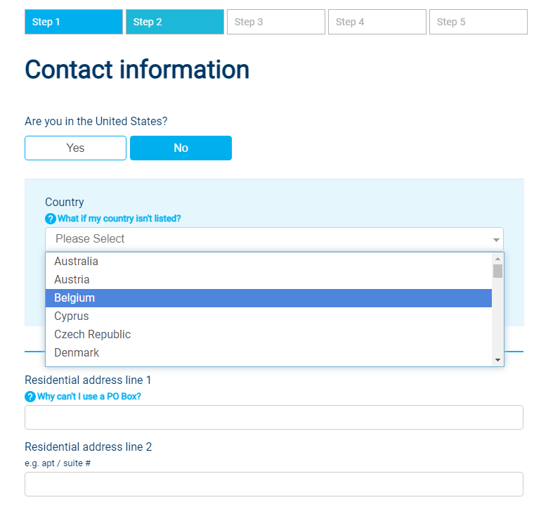 На этапе регистрации аккаунта нужно выбрать страну из списка, если ее в нем нет, то Nadex не принимает клиентов из этого государства. Биржа не сообщает о планах расширения географии работы, неизвестно будут ли в будущем добавлены Россия и прочие страны постсоветского пространства.