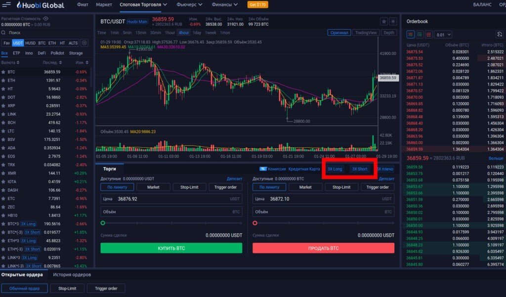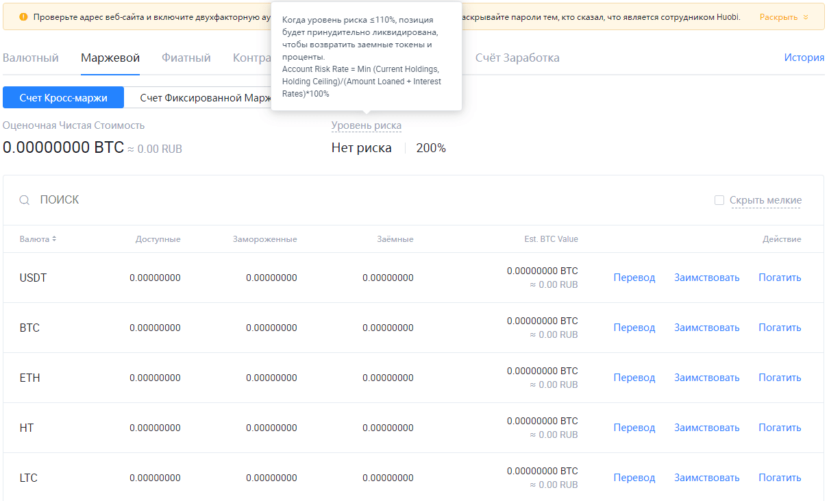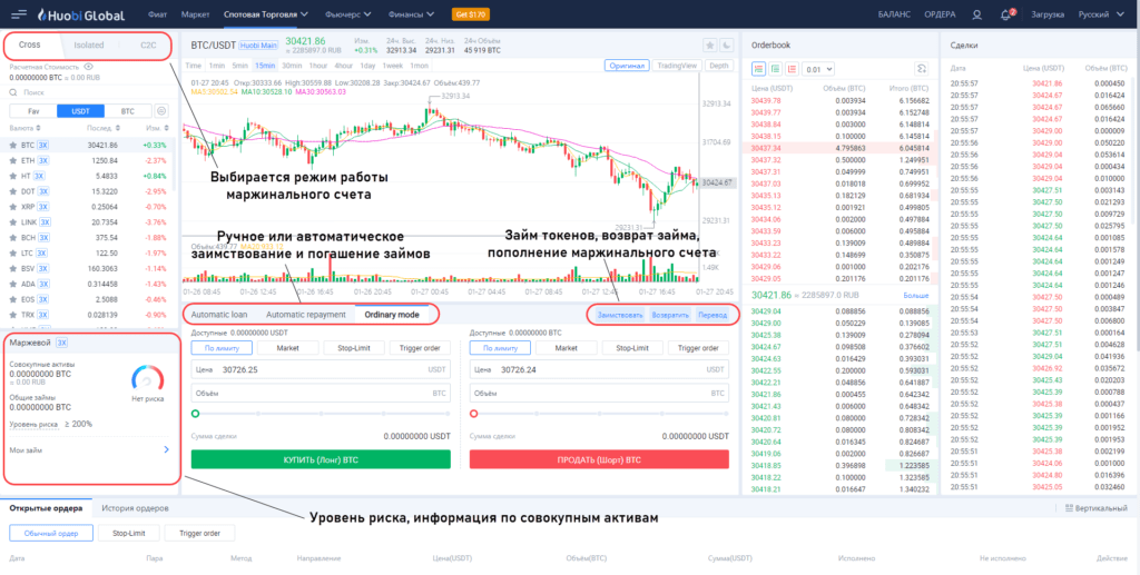 Под этим термином понимается торговле на заемные средства. У Huobi реализована возможность занимать токены у биржи и работать с плечом. Терминал претерпевает лишь незначительные изменения, но перед началом маржинальной торговли придется предпринять несколько подготовительных шагов. Для ознакомления с информацией по маржинальным счетам и условиям работы: