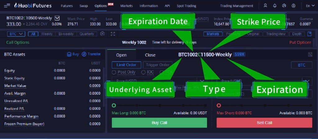 Также на futures.huobi.com доступны опционы на криптоактивы. Это европейский тип опционов, то есть они не могут погашаться до даты экспирации. Принцип работы с опционами в целом тот же, что и на обычных фондовых биржах. Покупатель платит премию, а его прибыль по итогам торговли зависит от разницы между страйком и ценой криптоактива на момент экспирации контракта.