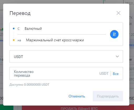 - Появляются кнопки «Заимствовать», «Возвратить» и «Перевод». Первые 2 используются для работы с займами, «Перевод» – для пополнения маржинального счета. Перед торговлей на него нужно перевести средства.