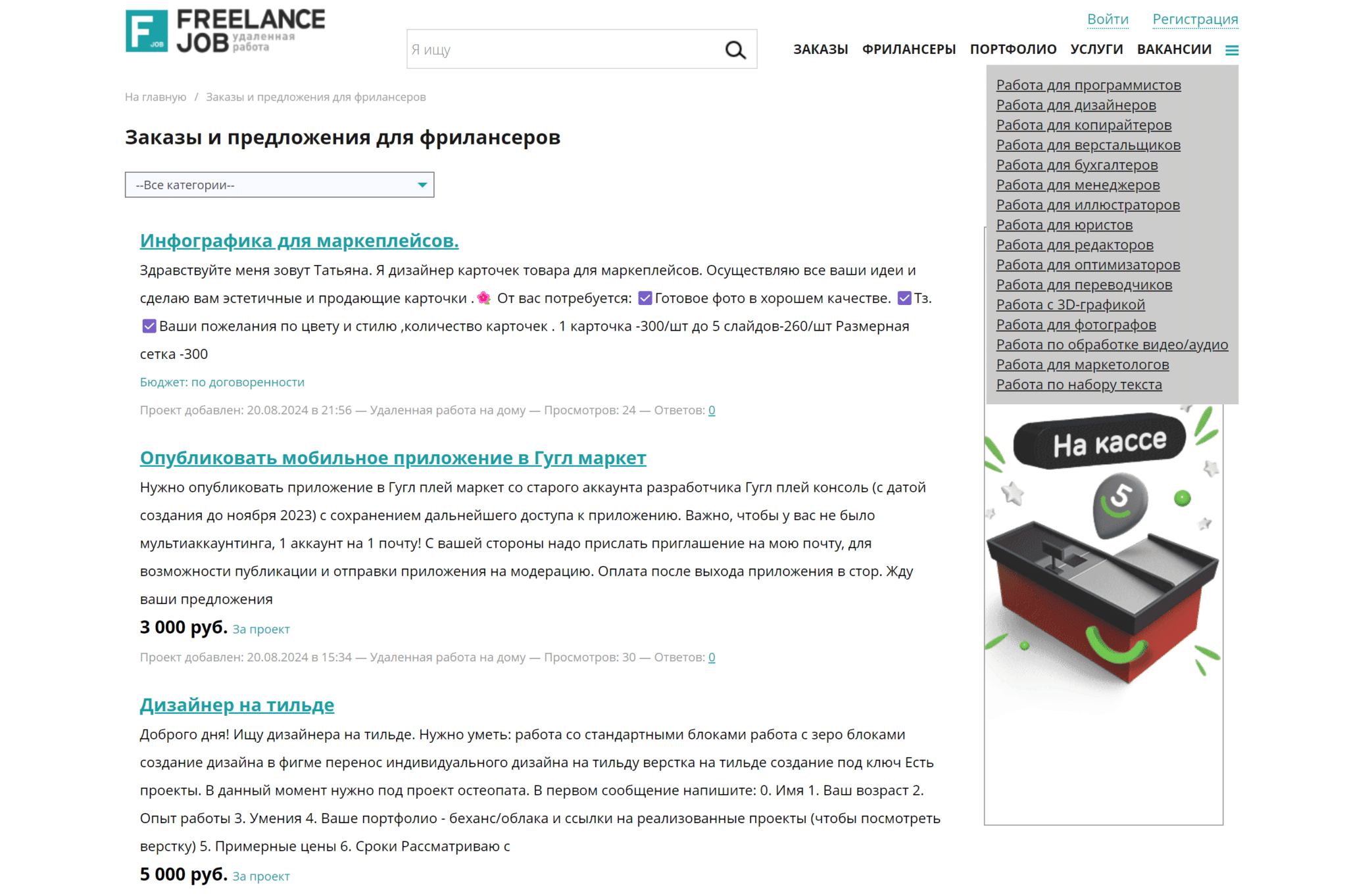 Платформа довольно старая, старт пришелся на середину нулевых. Но несмотря на возраст Freelancejob не удалось достичь показателей FL.ru и других конкурентов. Это относительно скромная по количеству заказов и исполнителей биржа.