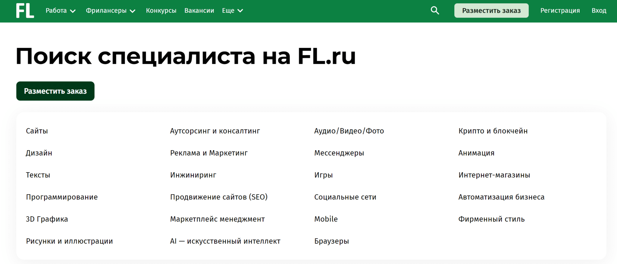 - Наличие заказчиков всех весовых категорий. Услугами FL.ru пользуются не только владельцы небольших сайтов, которым нужен продающий текст или творческое описание светильника.