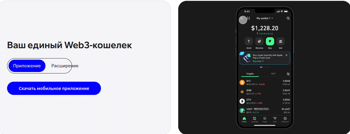 Отличный интерфейс, встроенный обменник, поддержка NFT, синхронизация с десктопом