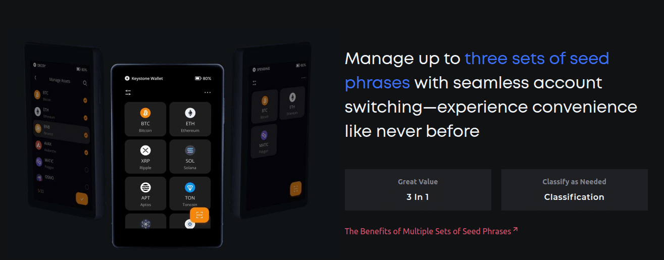 100% Air-gapped (воздушный зазор), QR-коды, 3 Secure Element, большой сенсорный экран