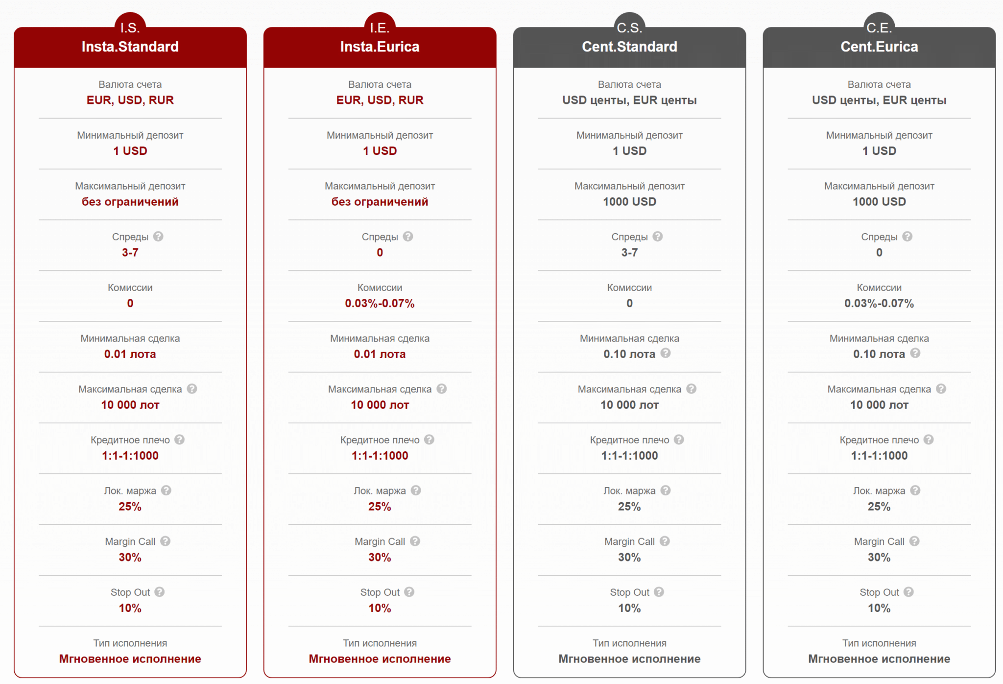 - Плечо до 1 к 1000, исполнение мгновенное на всех типах счетов InstaForex.