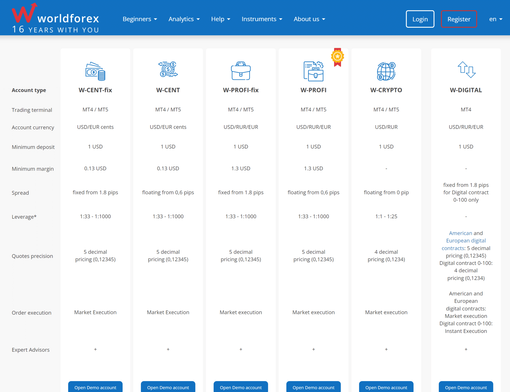WorldForex предлагает 2 типа центовых счетов – fixed и обычные: