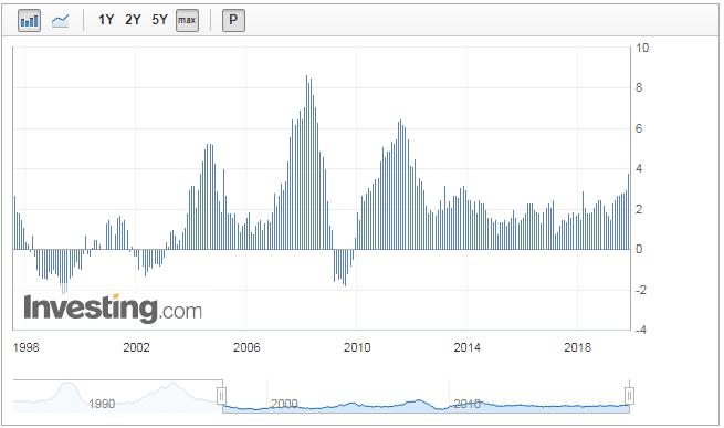 Понятие инфляции не ограничивается лишь положительными значениями. Действительно, иногда можно встретить такое удивительное явление, как отрицательная инфляция, её принято называть “дефляция”. Она имеет связь с обменным курсом национальной валюты, в качестве примеров таких стран можно привести Швейцарию и Японию. Они не понаслышке знакомы с этой проблемой – и франк и иена относятся к защитным активам, и в качестве наиболее безопасных валют показывают устойчивый спрос. В таких ситуациях власти обычно принимают меры, направленные на разгон инфляции и ослабление валюты. Тем не менее, процесс идёт очень медленно, от изменения с -1% до 1% уходят целые годы, а иногда ещё дольше. Бороться с дефляцией необходимо для поддержания темпов роста экономики.