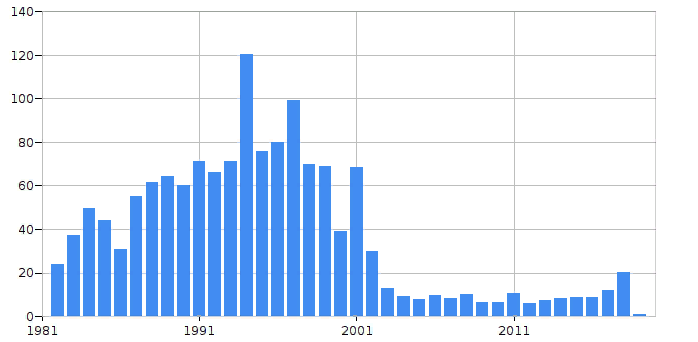 Можно отметить тот факт, что не смотря на периодические всплески, есть долгосрочная тенденция к снижению. Уменьшение инфляции с 800% до 200% можно назвать прекрасным результатом, но всё равно это была совершенно нездоровая ситуация. Последние два повышения уровня роста цен наблюдались во время двух негативных происшествий – мирового кризиса 2007-2008 и затем в 2014, когда начались санкции и рубль рухнул.