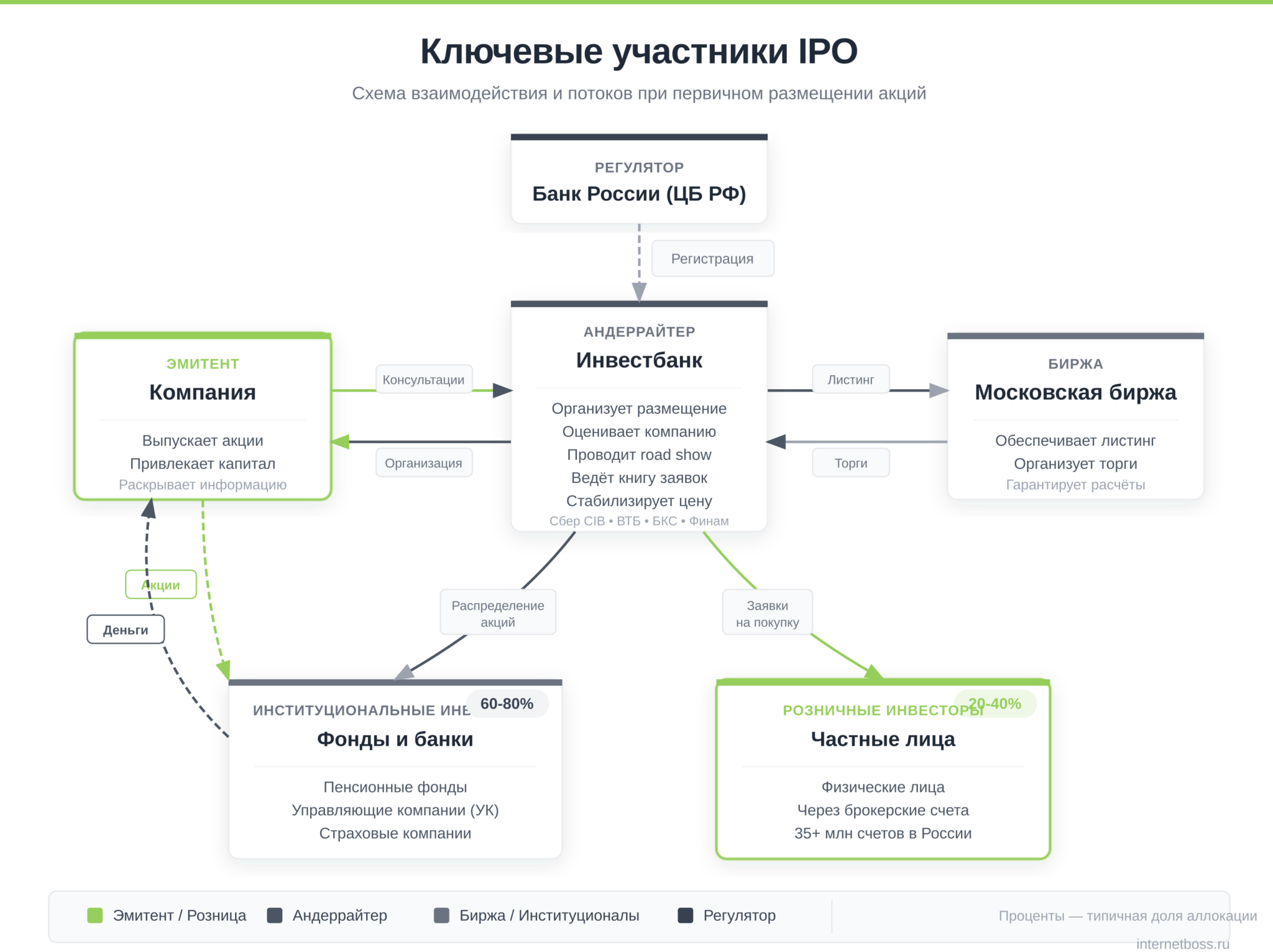Практика показывает, что многие новички путают IPO с началом торгов акциями. Технически это почти совпадает, но важно понимать разницу. IPO — это именно процесс первичной продажи акций компанией (или её текущими акционерами) новым инвесторам. Деньги от этой продажи получает эмитент или продающие акционеры. А вот когда вы покупаете акции на бирже через неделю после IPO — это уже вторичный рынок: вы покупаете у другого инвестора, который решил продать, и компания от этой сделки не получает ничего.