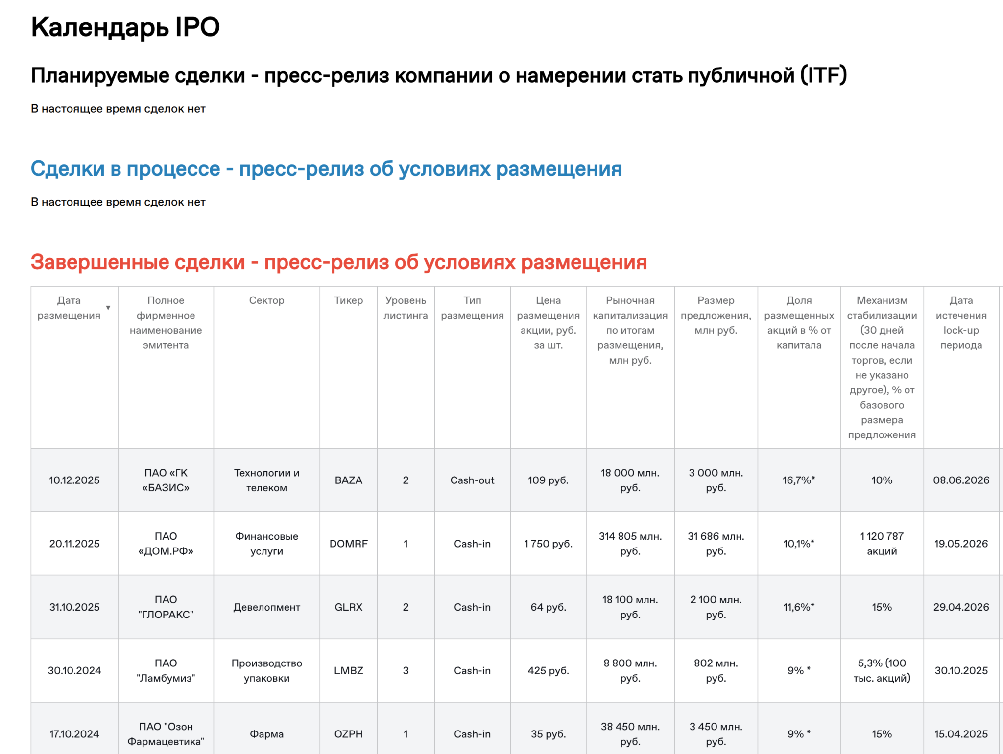 Но 2025 год снова оказался сложным — высокая ключевая ставка Банка России (выше 20%) сделала облигации и депозиты более привлекательными, чем акции, и компании откладывали размещения. Всего за год состоялось лишь 4 IPO: JetLend (краудлендинговая платформа), Дом.РФ (государственный институт развития), GloraX (девелопер) и «Базис» (IT-компания, дочка «Ростелекома»).