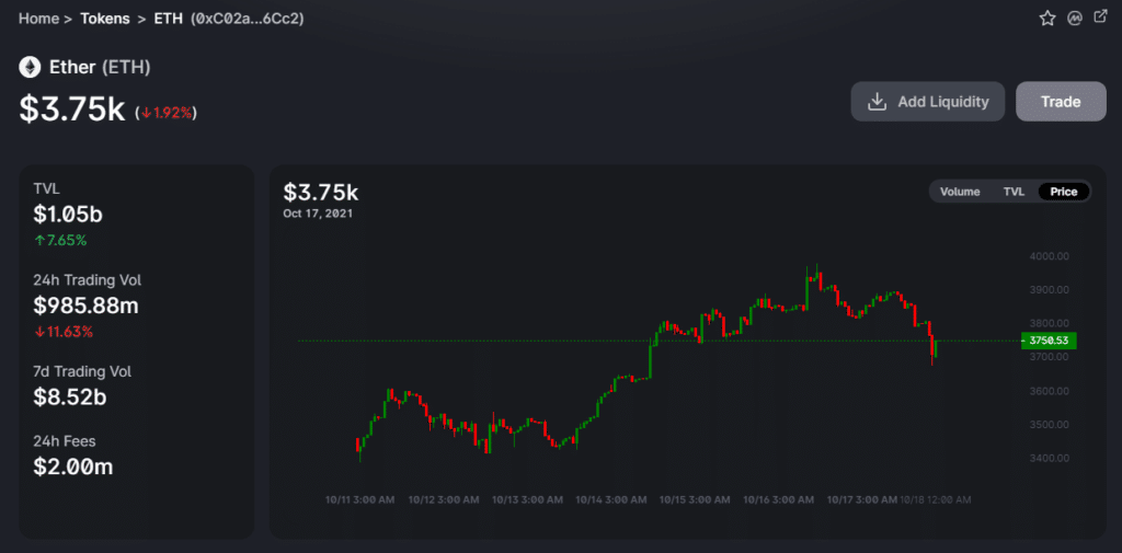 - Поддержку ограниченного количества активов. Пока что реализована поддержка только ERC 20 монет, к тому же должен существовать соответствующий пул на Юнисвап. Классического листинга нет, поэтому существенная доля альткоинов недоступна на этой DEX.