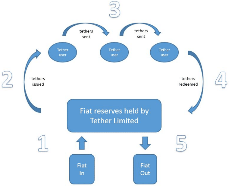 - пользователь переводит деньги на банковский счет Tether Limited;