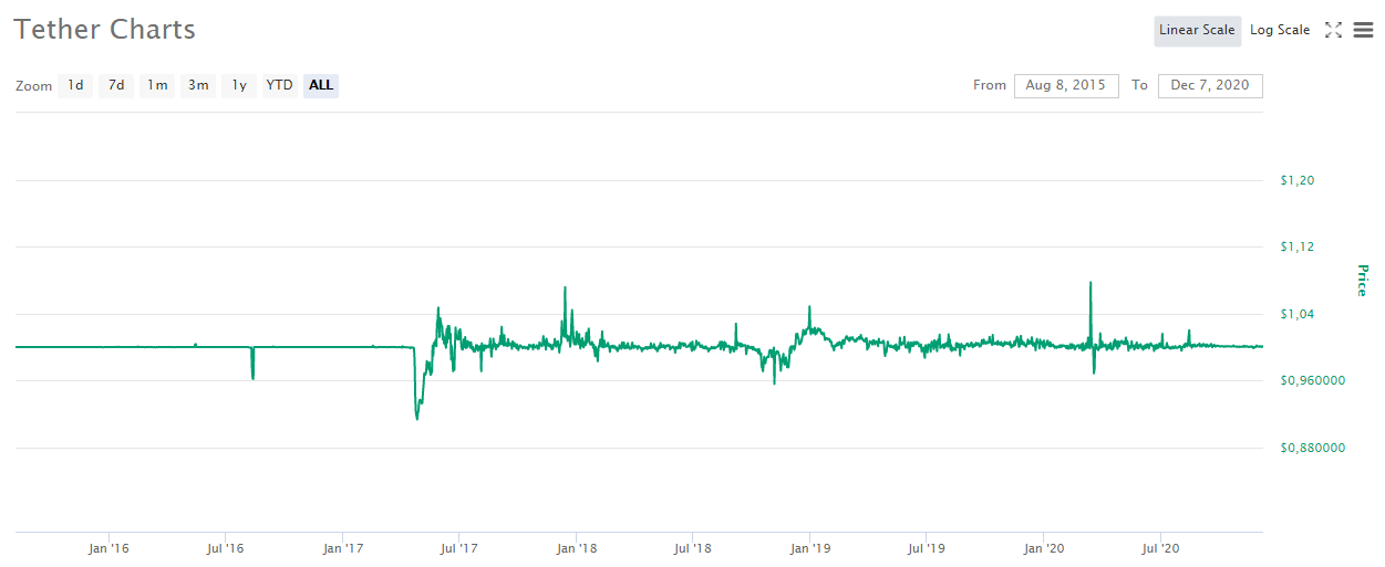 - решение проблемы повышенной волатильности крипты. Курс действительно фиксирован, что позволяет расширить спектр применения криптовалют. Редкие всплески быстро купируются и курс возвращается к отметке 1,00 USDT за $1;
