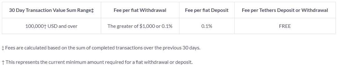 Принимаются только крупные платежи, как минимум 100000 USDT за месяц. Комиссия за вывод составляет 0,1% при выводе от $1000, ту же комиссию с вас возьмут при пополнении счета на любую сумму. Переводы в токенах Tether не облагаются комиссиями.