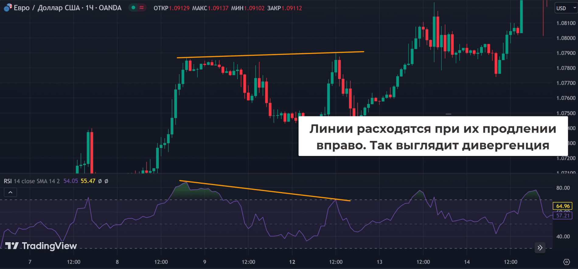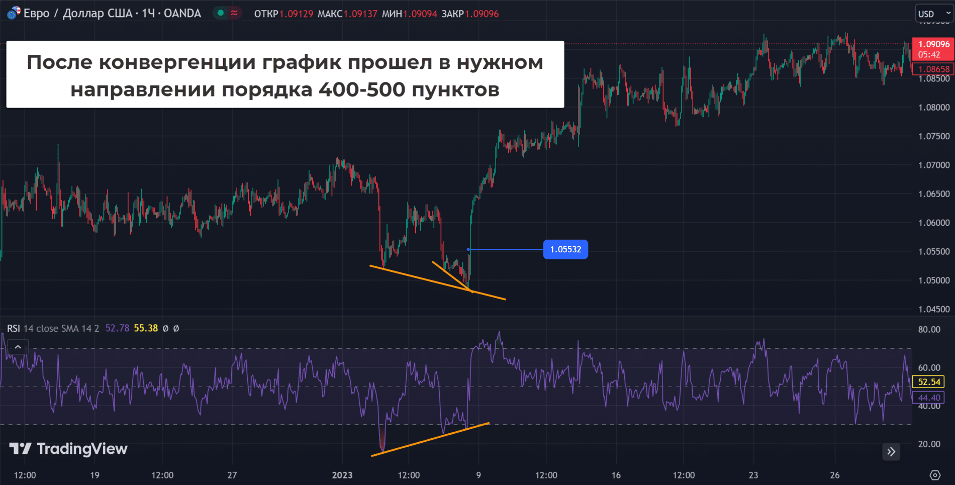 Внешний вид, принцип формирования дивергенций/конвергенций на RSI