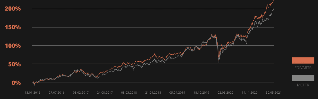 В России аналогов пока что нет. Выделить можно разве что разработку Финама, который создал «Индекс дивидендных аристократов РФ». Критерии стандартные, чтобы попасть в него компания должна стабильно выплачивать дивиденды и находиться в индексе Московской биржи.