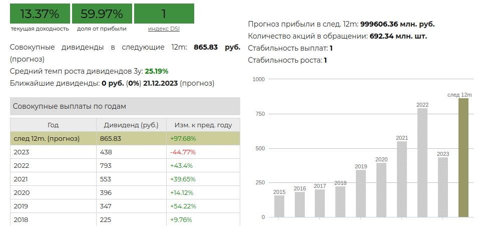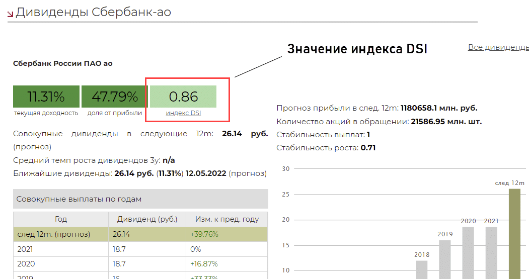 - DSI = 1,0. Это возможно при условии, что выплаты растут как минимум 7 лет подряд.