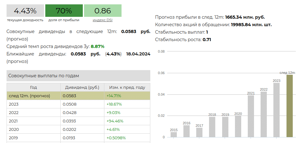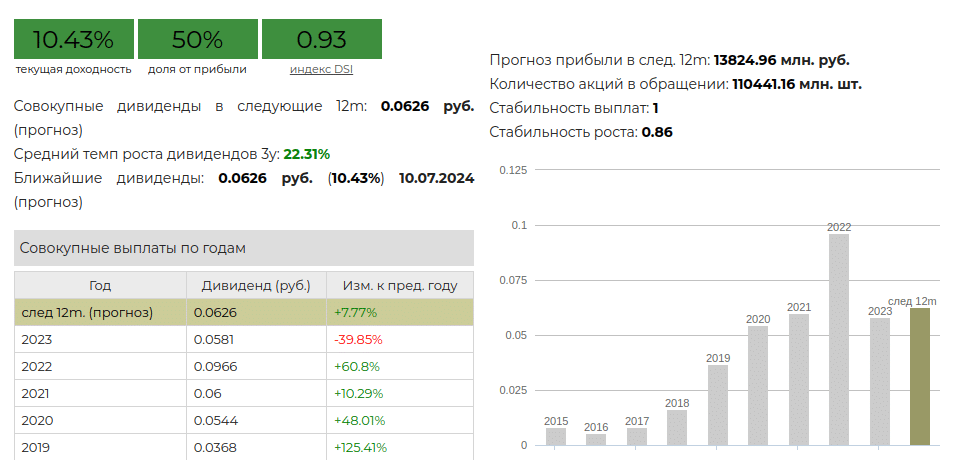 - 0,4 < DSI < 0,6. Средняя привлекательность, дивиденды могут снижаться, на 7-летнем отрезке как минимум 4 года акционеры получали вознаграждение. Последнее снижение было 1-2 года назад, но в будущем скорее всего выплаты сохранятся.