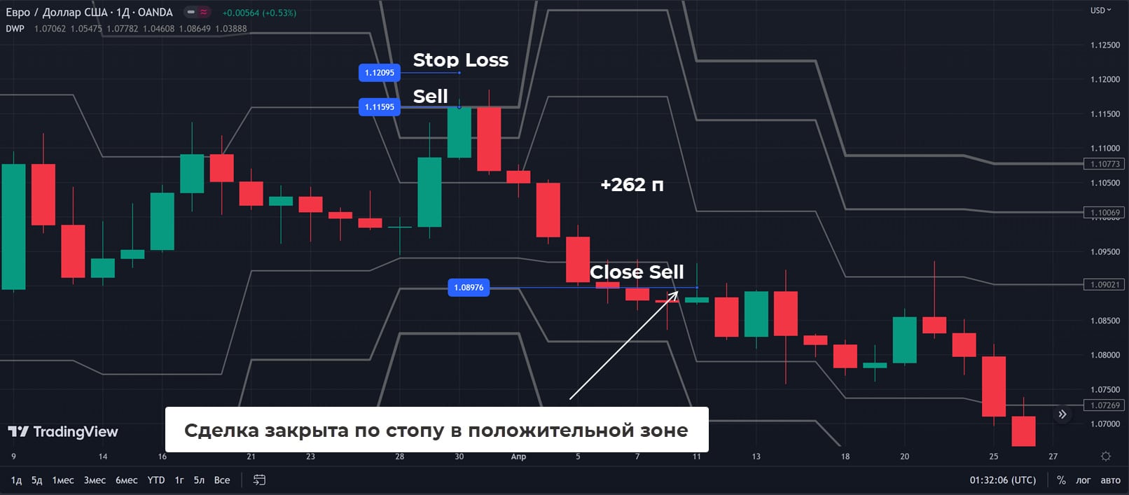 - Стоп-лосс тот же, что и при покупках.