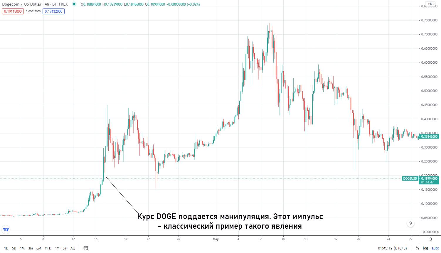 - Крипта не меняется с технической точки зрения. Ее курс будет определяться в большей степени хайпом и отношением к ней известных людей. Тот же Маск может своими твитами влиять на курс любой крипты. При неблагоприятном стечении обстоятельств DOGE может выпасть из ТОП 20 по капитализации.