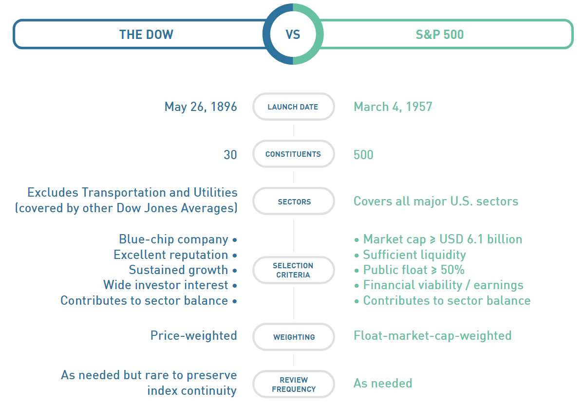 Если сравнить его с прямым конкурентом в лице S&P 500, то последний больше подходит на роль индикатора, характеризующего экономику США. В него входит 500 компаний, более адекватно представлены разные секторы экономики, есть четкие критерии пересмотра состава, при расчете учитывается free—float капитализация.