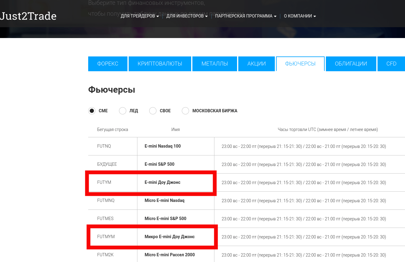 - Фьючерсы и опционы. На чикагской CBOT и CBOE, CME торгуются фьючерсы и опционы соответственно. Размер фьючерсного контракта $5 x значение US30, минимальное изменение цены – $5. Оба типа контрактов не подходят для долгосрочного инвестирования, используются только для активной торговли. Доступ к торговле этими инструментами также предоставляют брокеры. Подойдет опять же Just2Trade.