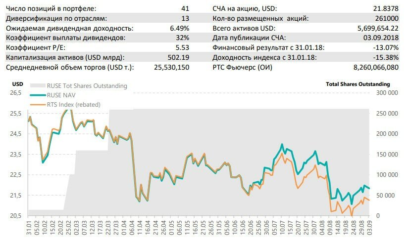 - ITI Funds RTS Equity ETF – копирует долларовый индекс РТС (RTSI$ Index), тикер – RUSE.