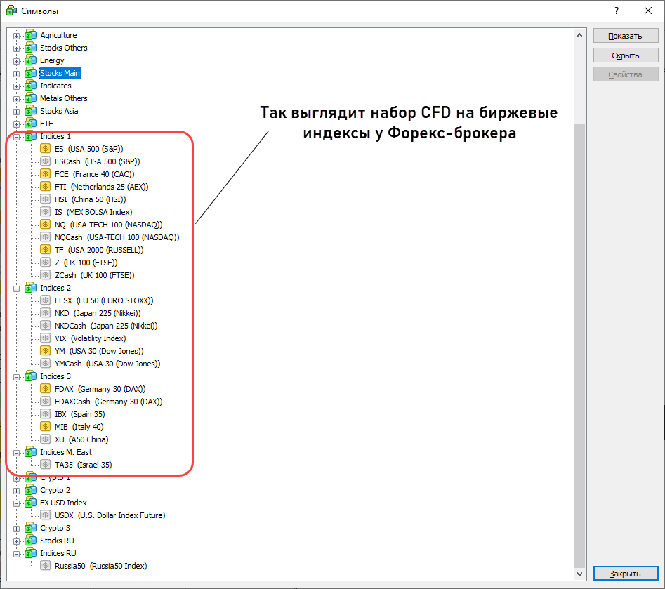 Этот инструмент массово используют Форекс-брокеры, в терминалах МетаТрейдер 4 и 5 доступны CFD на индексы фондового рынка. Контракты на разницу хороши тем, что облегчают активный трейдинг и снижают входной порог до минимума. График совпадает с биржевым с точностью до 2-3 знака после запятой, небольшая погрешность не сказывается на результатах торговли.