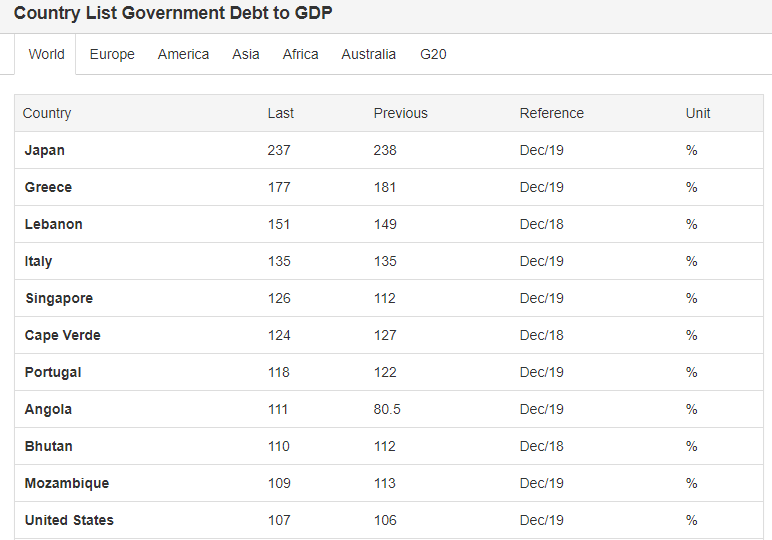 Несмотря на это США не занимают первое место в рейтинге. До долговой нагрузки Японии еще далеко.