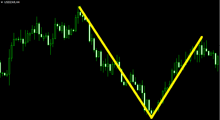 Рассмотрение разворотных паттернов на форекс мы начнём с самой простой фигуры V-образного разворота. Он состоит всего из двух движений, но может являться составной частью более крупной фигуры, поэтому нужно ориентироваться на то, как выглядит такой разворот. Есть признаки, по которым можно понять, что тренд продолжится и входить рискованно.