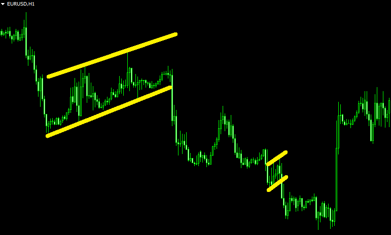 Графический метод анализа рынка форекс содержит не только разворотные модели, но и такие, которые подразумевают дальнейшее развитие тренда. Подобные формации хорошо работают на среднесрочной торговле, то есть от M15 до H4. В редких случаях эти фигуры можно увидеть и на дневном тайм-фрейме. На пятиминутках и минутках это, скорее, будет просто случайная комбинация волн, нежели действительно паттерн. Связано это с тем, что довольно значительную роль в таких колебаниях играет так называемый рыночный шум – на рынке функционирует огромное количество торговых систем-роботов, которые ловят совсем небольшие колебания, из-за этого и получается такой хаос на малых тайм-фреймах. В импульсных движениях они практически незаметны.